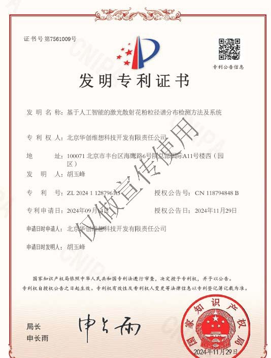 花粉粒徑譜分布檢測(cè)方法及系統(tǒng)獲得國家發(fā)明專利